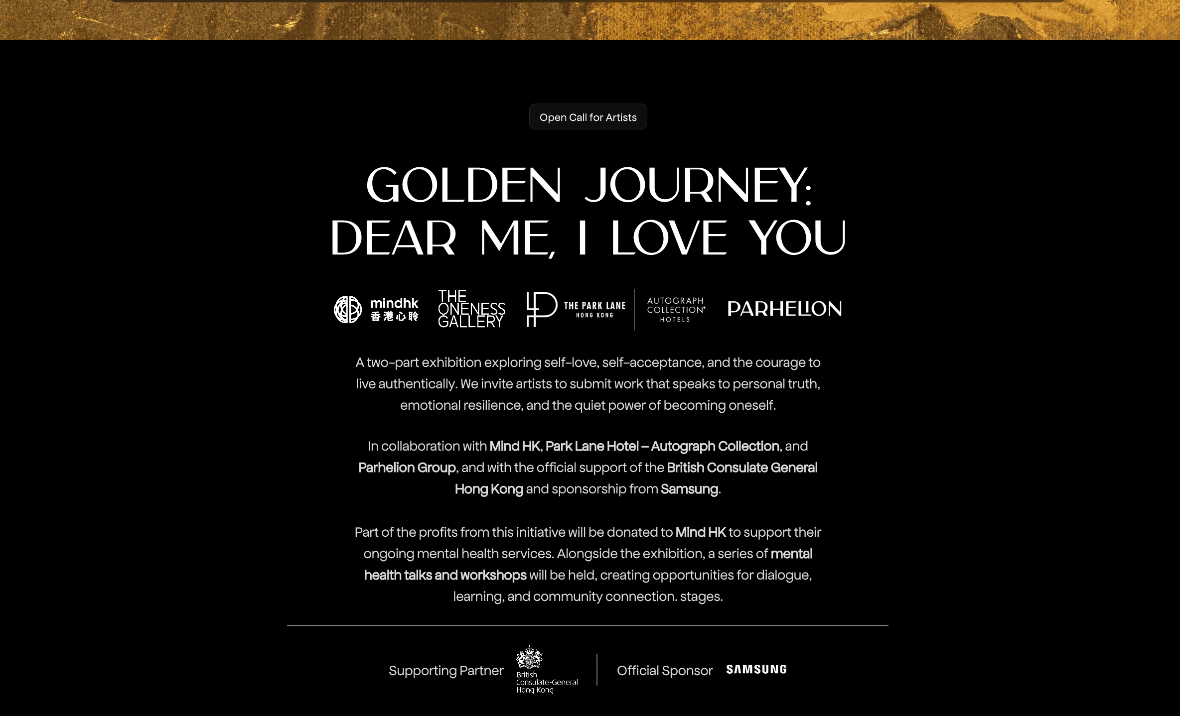 Organised by Mind HK, The Oneness Gallery, Park Lane Hotel Autograph Collection, and Parhelion Group, the exhibition invites artists to explore two deeply personal themes: Self Acceptance and Be Your Authentic Self.