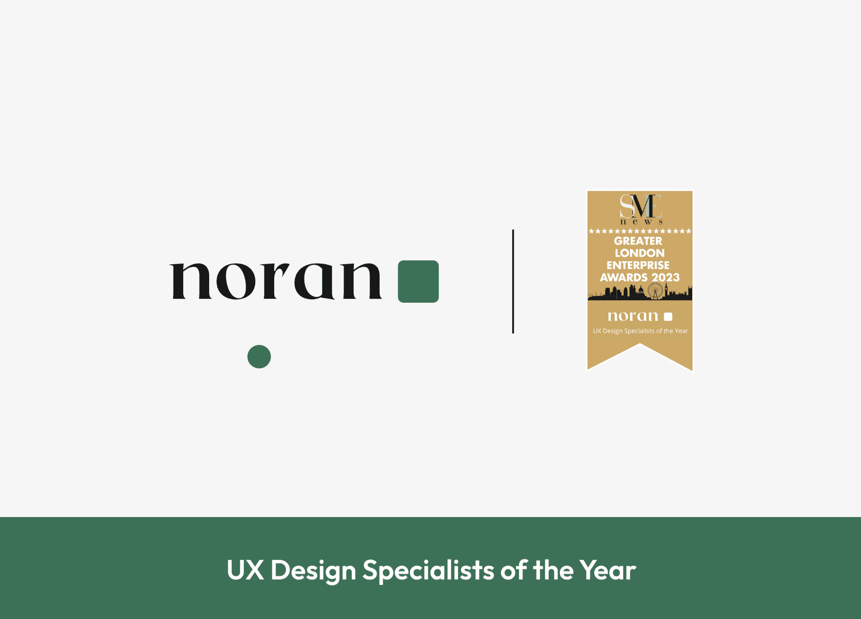 We are thrilled to announce that Noran Design has been honored with the prestigious title of UX Design Specialists of the Year 2023 at the Greater London Enterprise Awards, presented by SME News.